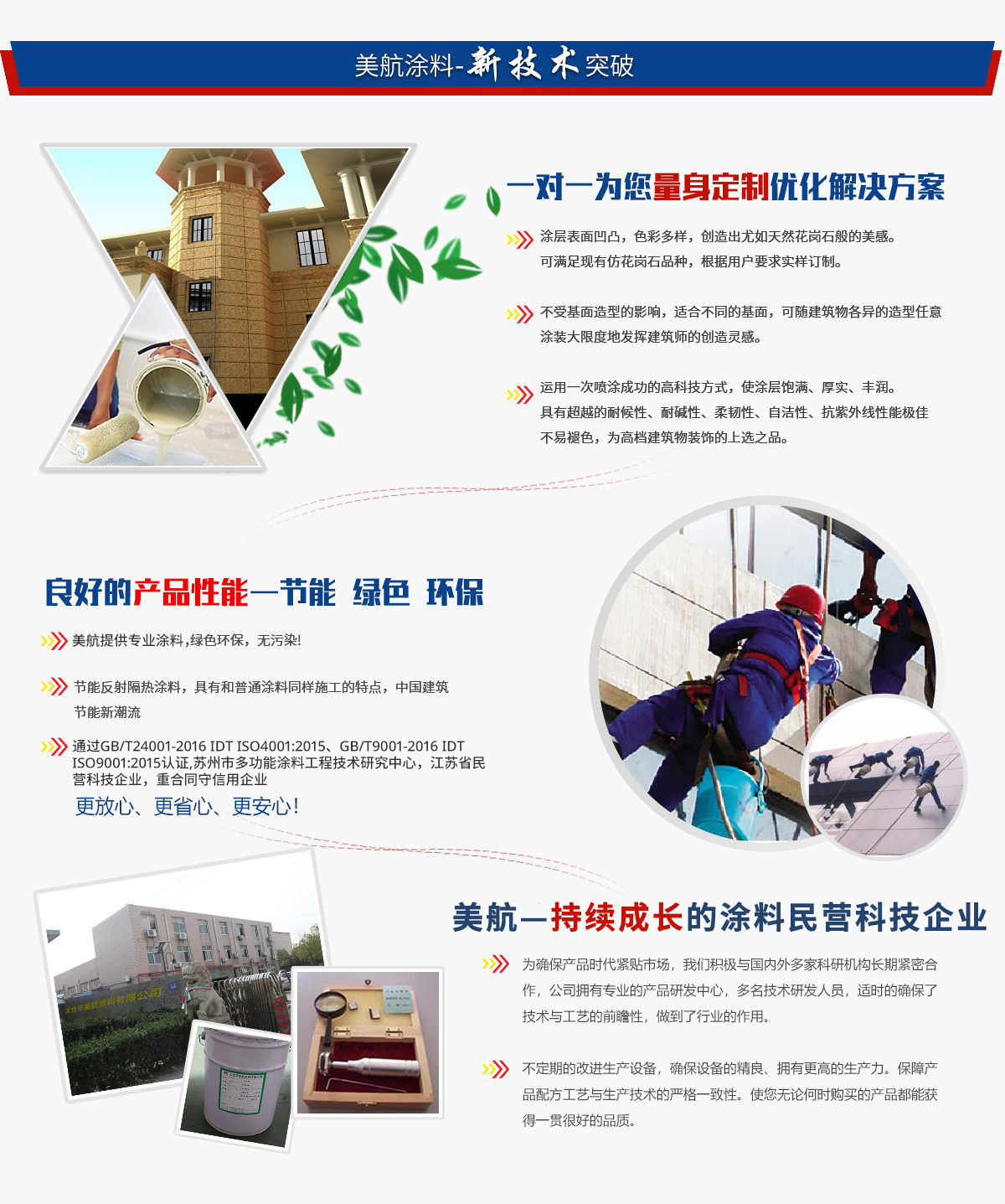 太倉市美航涂料有限公司是一家集高端涂料產品和工業新材料的研發(fā)、生產、加工、銷售和服務一體的現代化企業。公司創(chuàng)建于2005年06月,立足江蘇太倉,服務大家。分別在重慶、浙江金華、廣東東莞、湖南郴州設有工程研發(fā)打樣中心、加工中心和服務中心。公司以質量為企業生命,全員參與通過ISO9001:2008質量管理體系認證和ISO14001:2004環(huán)境管理體系認證。